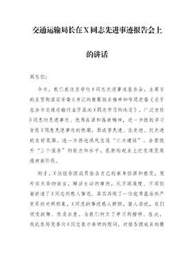 交通运输局长在X同志先进事迹报告会上的讲话.docx