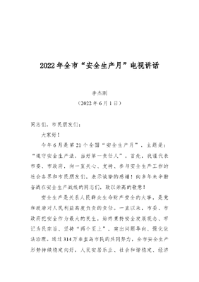 李杰刚同志2022年全市“安全生产月”电视讲话.docx