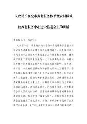 民政局长在全市养老服务体系暨农村区域性养老服务中心建设推进会上的讲话.docx