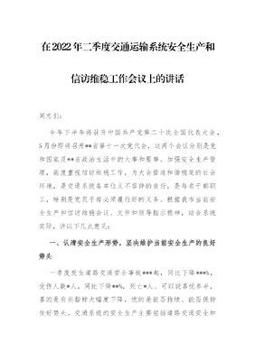 在2022年二季度交通运输系统安全生产和信访维稳工作会议上的讲话.docx