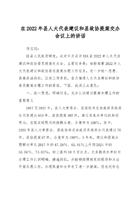 在2022年县人大代表建议和县政协提案交办会议上的讲话.docx