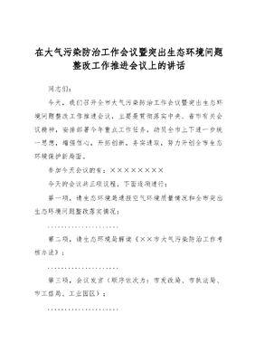在大气污染防治工作会议暨突出生态环境问题整改工作推进会议上的讲话.docx