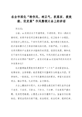 在全市深化“转作风、树正气、抓落实、提效能、促发展”作风整顿大会上的讲话.docx