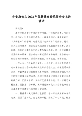 公安局长在2023年弘扬优良传统报告会上的讲话.docx
