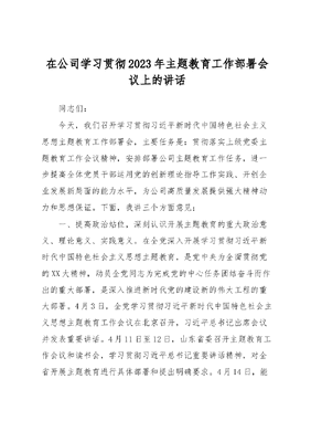 在公司学习贯彻2023年主题教育工作部署会议上的讲话.docx