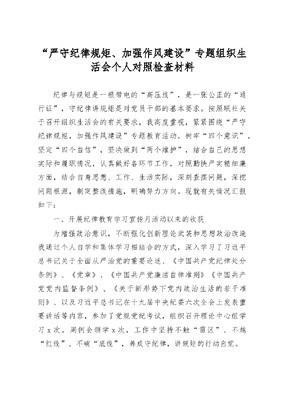 党员干部“严守纪律规矩+加强作风建设”组织生活会个人对照检查材料.docx
