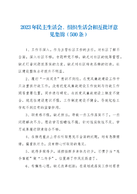 (500条)2023年民主生活会、组织生活会相互批评意见集锦.docx