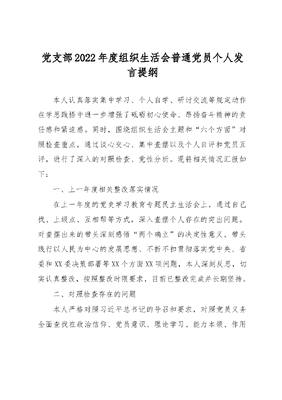 党支部2022年度组织生活会普通党员个人发言提纲.docx