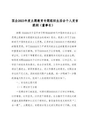 国企2023年度主题教育专题组织生活会个人发言提纲(董事长).docx