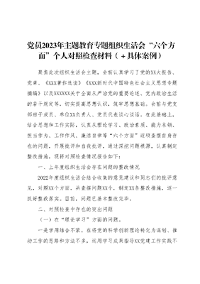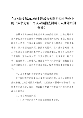 在XX党支部2023年主题教育专题组织生活会上的“六个方面”个人对照检查材料(+具体案例分析).docx
