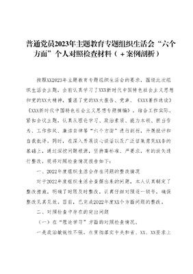 普通党员2023年主题教育专题组织生活会个人对照检查材料(+案例剖析).docx