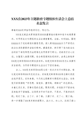 XXX在2023年主题教育专题组织生活会上总结表态发言.docx