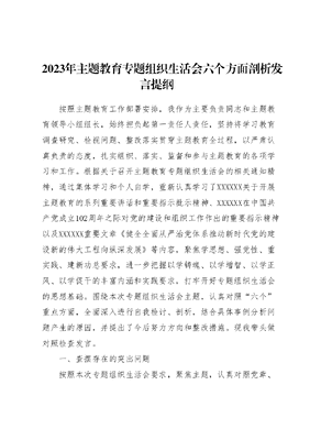 2023年主题教育专题组织生活会六个方面剖析发言提纲.docx