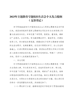 2023年主题教育专题组织生活会个人发言提纲(支部书记).docx