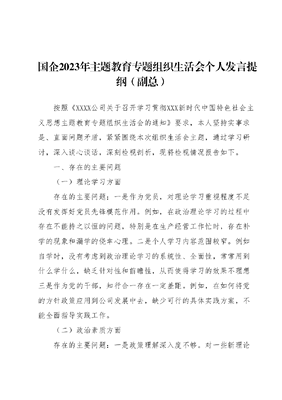 国企2023年主题教育专题组织生活会个人发言提纲(副总).docx