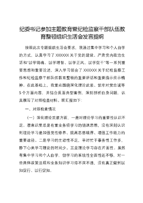 纪委书记参加主题教育暨纪检监察干部队伍教育整顿组织生活会发言提纲.docx