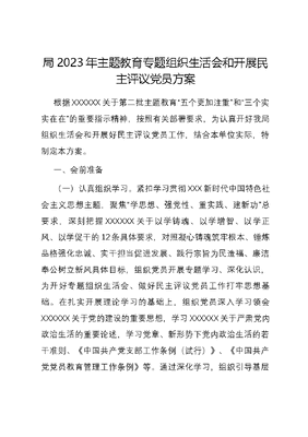 局2023年主题教育专题组织生活会和开展民主评议党员方案.docx