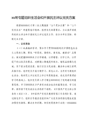 xx局专题组织生活会和开展民主评议党员方案.docx