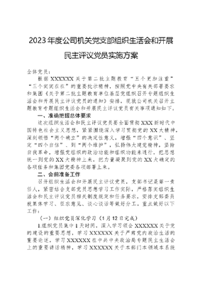 2023年度公司机关党支部组织生活会和开展民主评议党员实施方案.docx