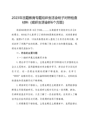 2023年主题教育专题组织生活会班子对照检查材料(组织生活会新6个方面).doc
