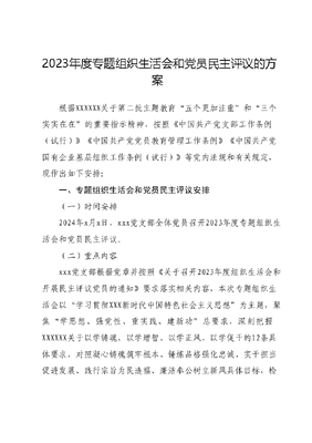 2023年度专题组织生活会和党员民主评议的方案.docx