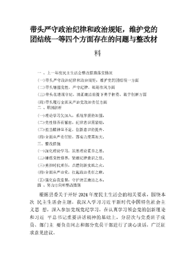 带头严守政治纪律和政治规矩 ,维护党的团结统一等四个方面存在的问题与整改材料.docx