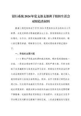 银行系统2024年党支部支部班子组织生活会对照检查材料.docx