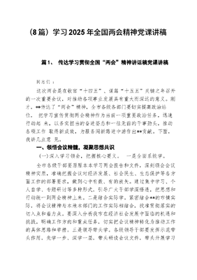 (8篇)学习2025年全国两会精神党课讲稿.docx