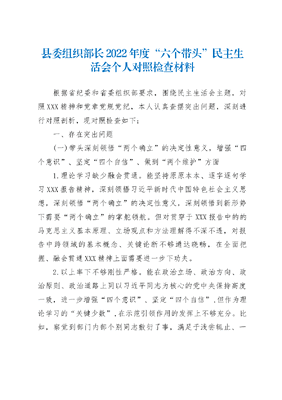 县委组织部长2022年度“六个带头”民主生活会个人对照检查材料.docx