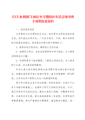 XXX水利部门2022年专题组织生活会领导班子对照检查材料.docx