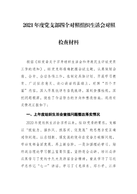2021年度党支部四个对照组织生活会对照检查材料.docx