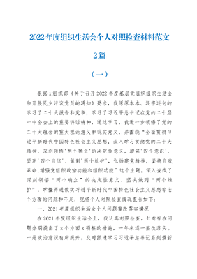 (2篇)2022-2023年度组织生活会七个方面个人对照检查材料范文.docx