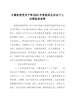 乡镇政府党员干部2022年度组织生活会个人对照检查材料.docx