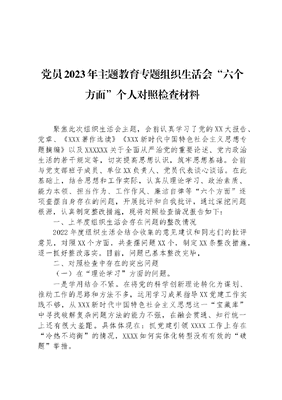党员2023年主题教育专题组织生活会“六个方面”个人对照检查材料.docx