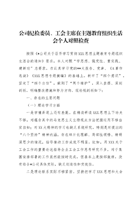 公司纪检委员、工会主席在主题教育组织生活会个人对照检查.docx