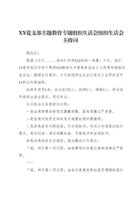 XX党支部主题教育专题组织生活会组织生活会主持词.docx