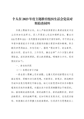 个人在2023年度主题教育组织生活会党员对照检查材料.docx