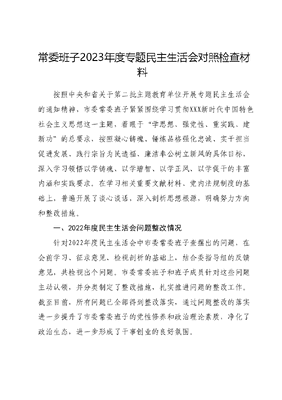 常委班子2023年度专题民主生活会对照检查材料.docx