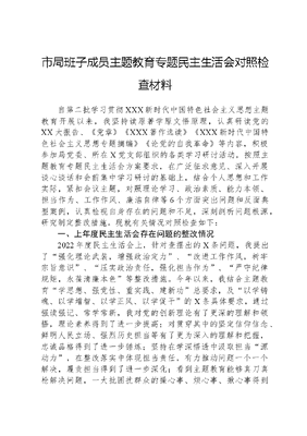 市局班子成员主题教育专题民主生活会对照检查材料.docx