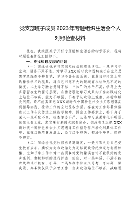 党支部班子成员2023年专题组织生活会个人对照检查材料.docx