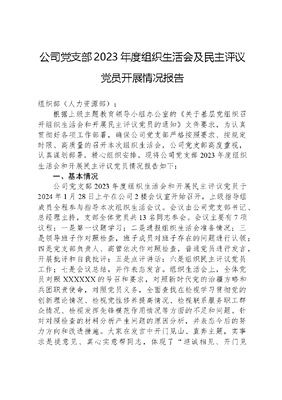 公司党支部2023年度组织生活会及民主评议党员开展情况报告.docx