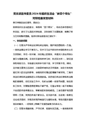 党支部宣传委员2024年组织生活会“新四个带头”对照检查发言材料(2025组织生活会).docx
