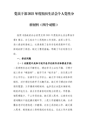 党员干部2021年度组织生活会个人党性分析材料(四个对照).docx