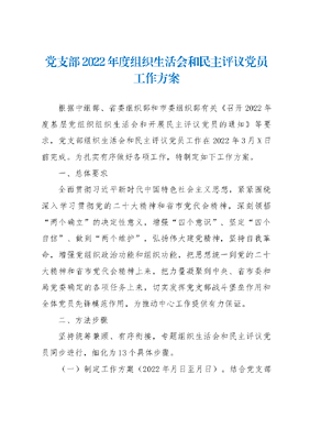 党支部2022年度组织生活会和民主评议党员工作方案.docx