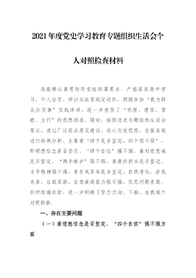 2021年度党史学习教育专题组织生活会个人对照检查材料.docx