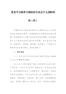 党史学习教育专题组织生活会个人剖析材料(终).docx