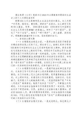 国企集团(公司)党委书记2023年主题教育专题组织生活会上的个人对照检查材料.docx