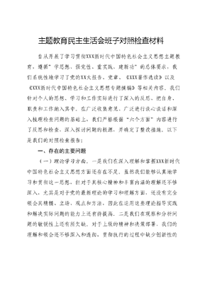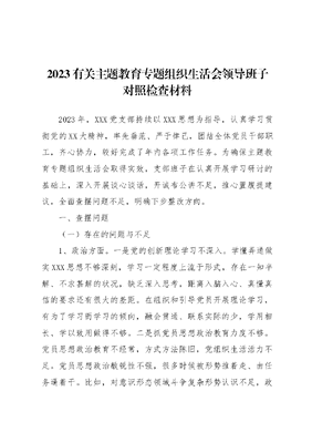 2023主题教育专题组织生活会领导班子对照检查材料.docx