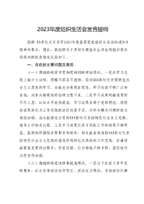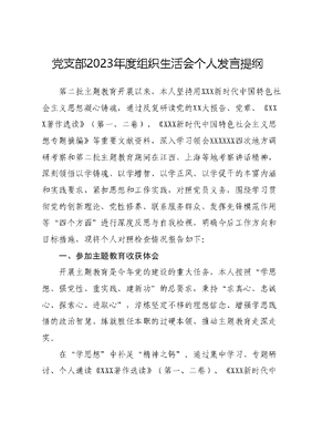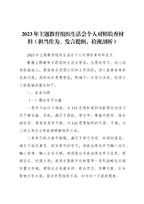 2023年主题教育组织生活会个人对照检查材料(担当作为、发言提纲,检视剖析).docx