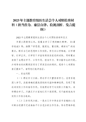 2023年主题教育组织生活会个人对照检查材料(担当作为、廉洁自律,检视剖析、发言提纲).docx